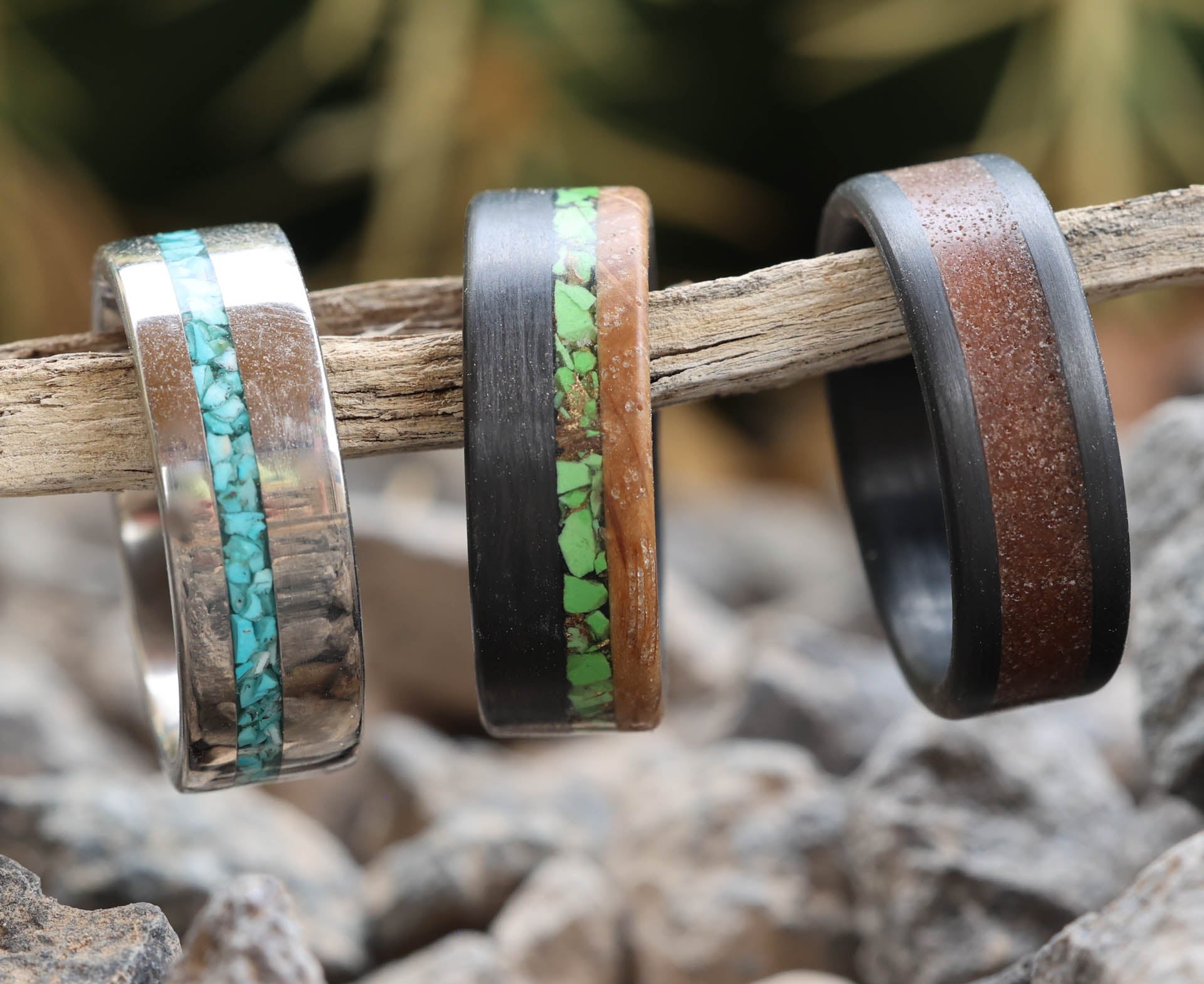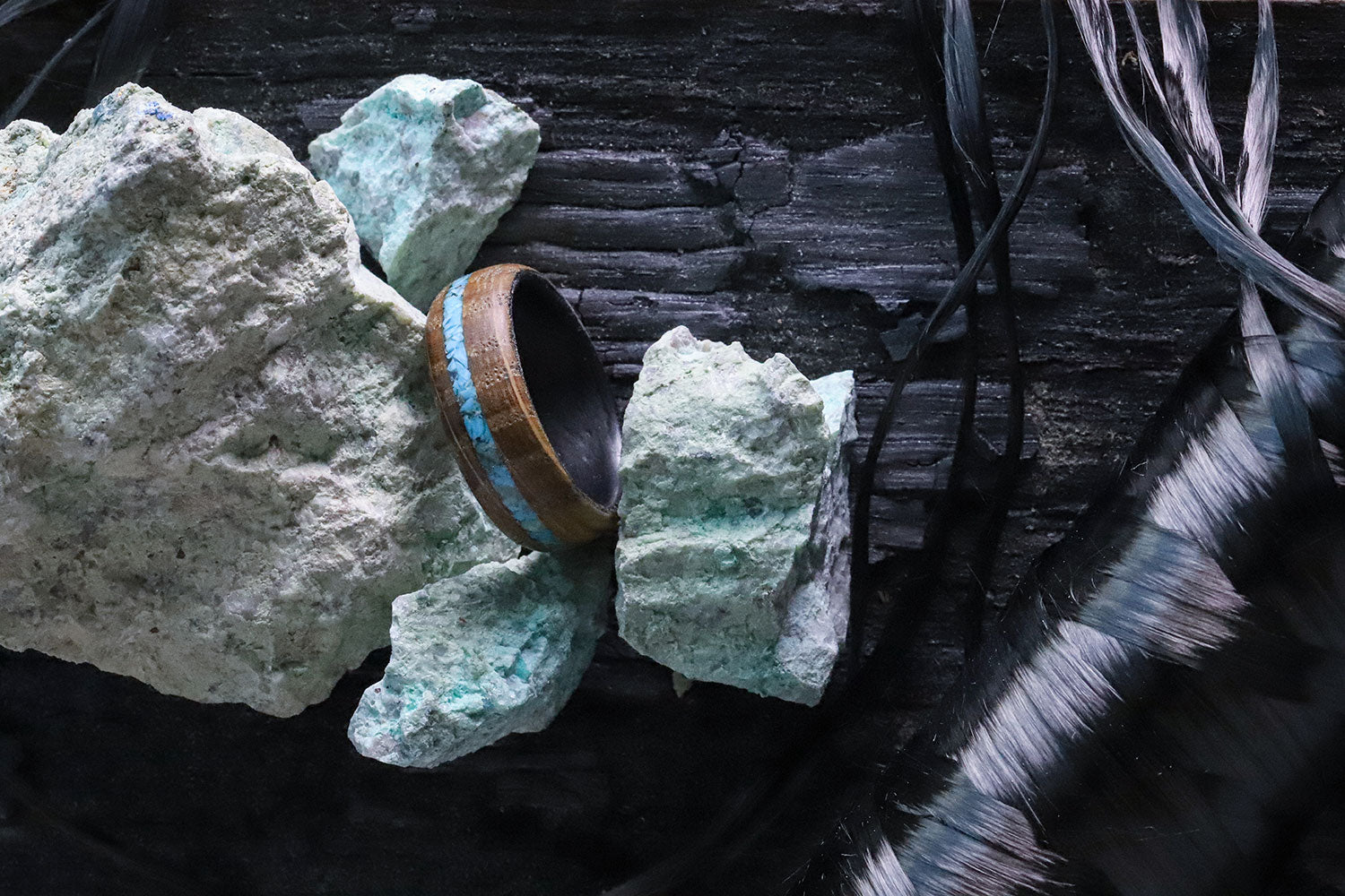 Handcrafted carbon fiber and wood rings for your next adventure.