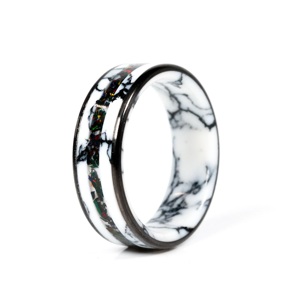 Lined with faux marble fit for Roman gods and flanked by dual marble stripes on the outside, this ring doesn’t whisper power—it shouts it across the Rubicon. In the center? A bold mosaic of colorful flakes, like the aftermath of a confetti-fueled coup. And just to let the haters know you’re battle-ready, it’s all locked down with twin carbon fiber rails—because even emperors need a little edge.