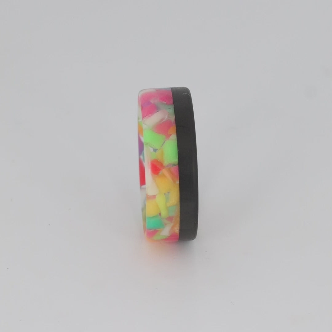 Rock, soul, blues, Janis did it all. Named as an homage to one of the most successful rock stars of her era, This pride glow in the dark ring with a black carbon fiber rail brings together all the colors to shine as bright as its namesake. Feel the soul through your hand as you wear The Joplin.