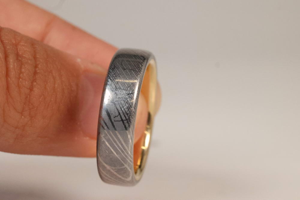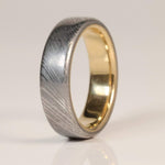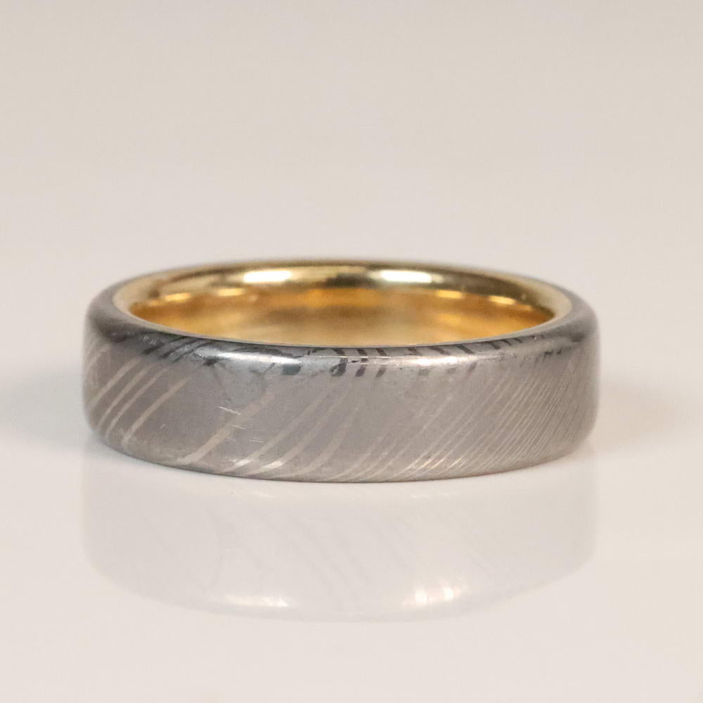 14 Karat Yellow Gold and Damascus Steel form the most royal union. This Damascus wedding ring exudes luxury and royalty and is built for the man who reigns supreme. Claim sovereignty over your enemies, or at least take your man cave back from the kids.