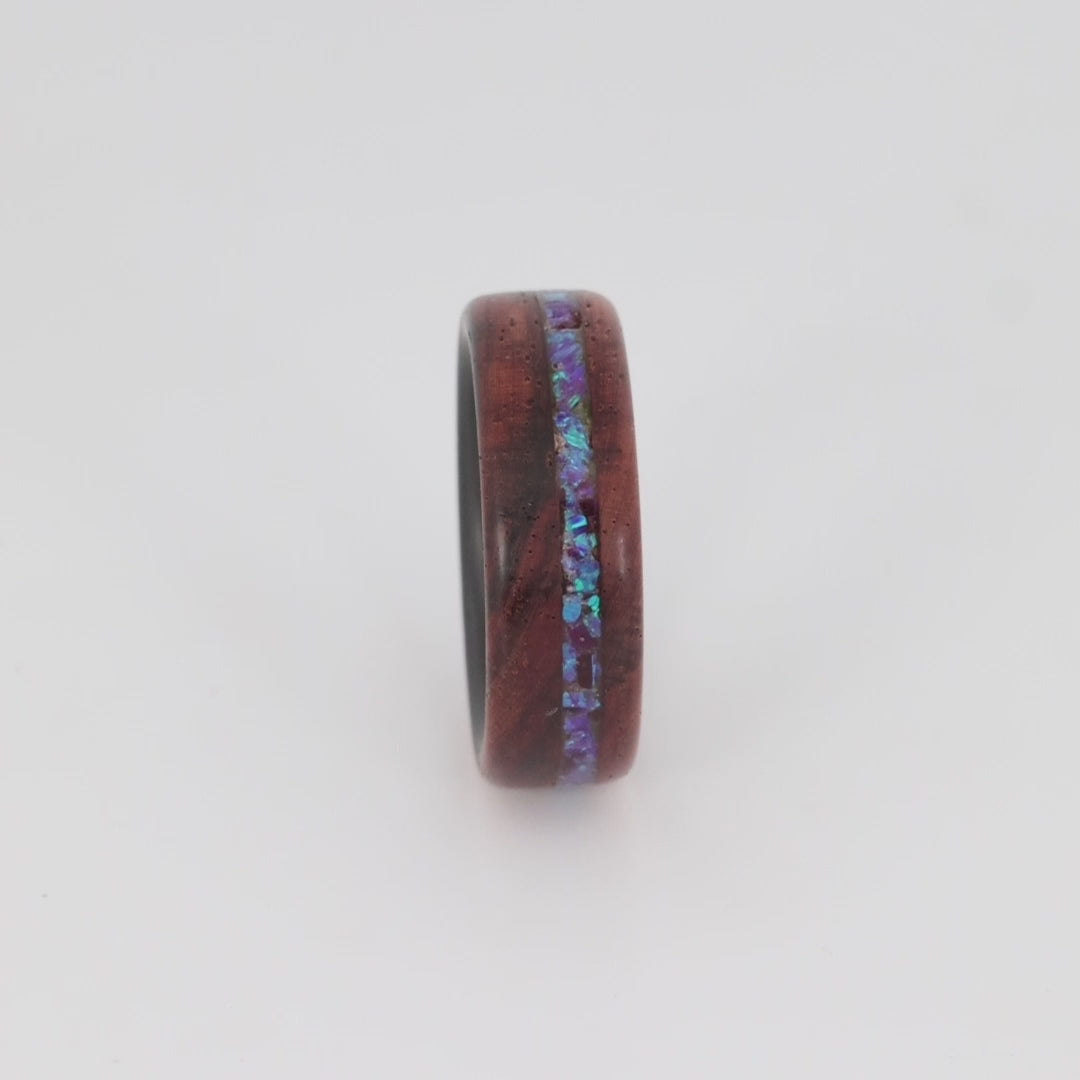 Cocobolo Wood Ring with Purple Opal Inlay and Carbon Fiber Sleeve
