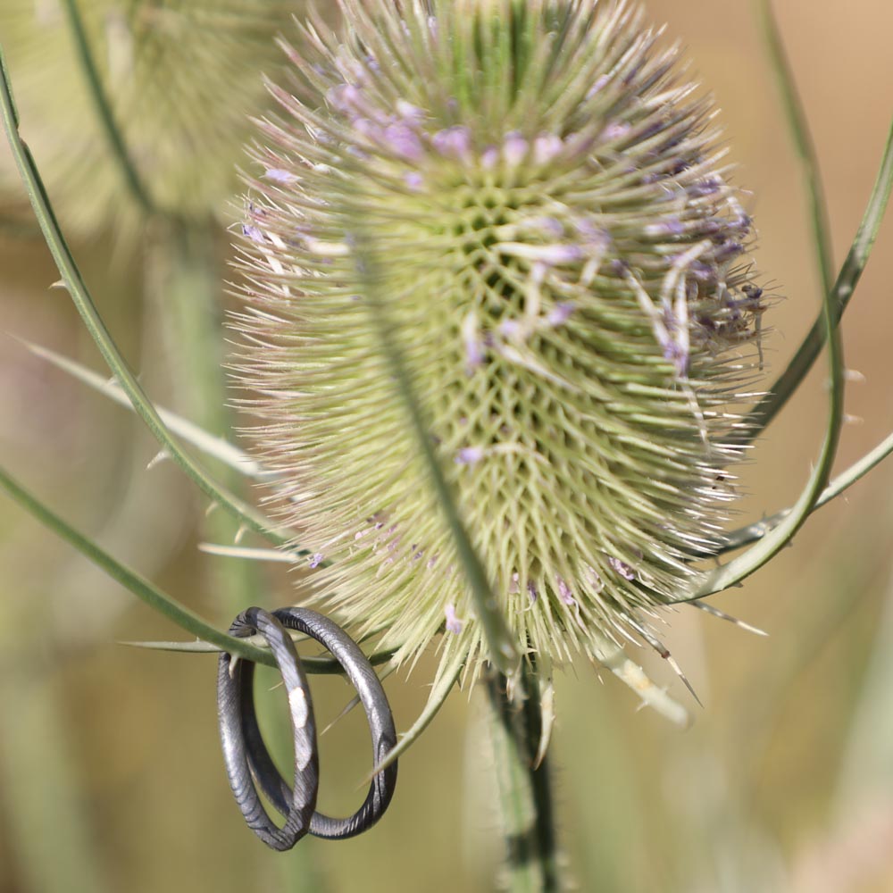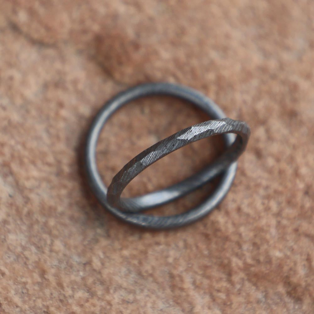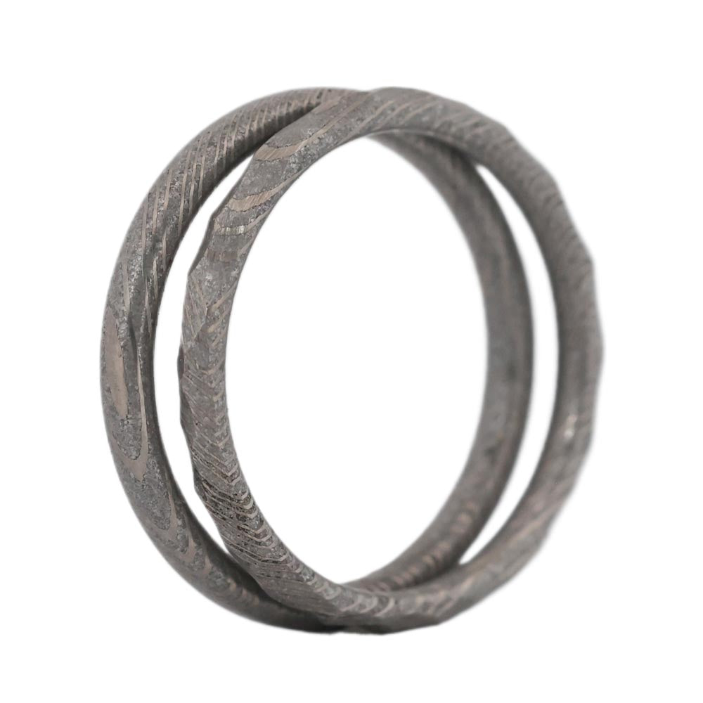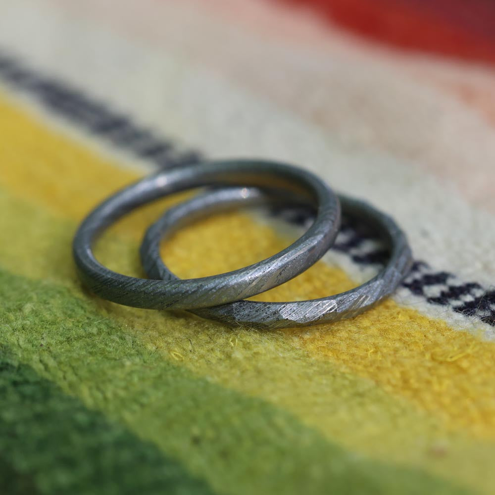 Our Damascus stackable rings are handmade in Salt Lake City from forged stainless steel. They are 2 millimeters in width but can be customized if so desired.