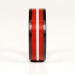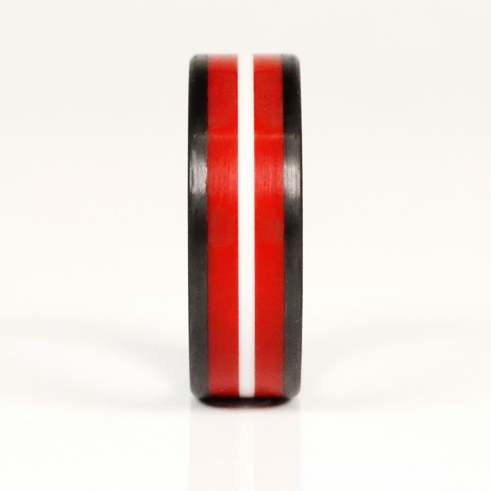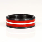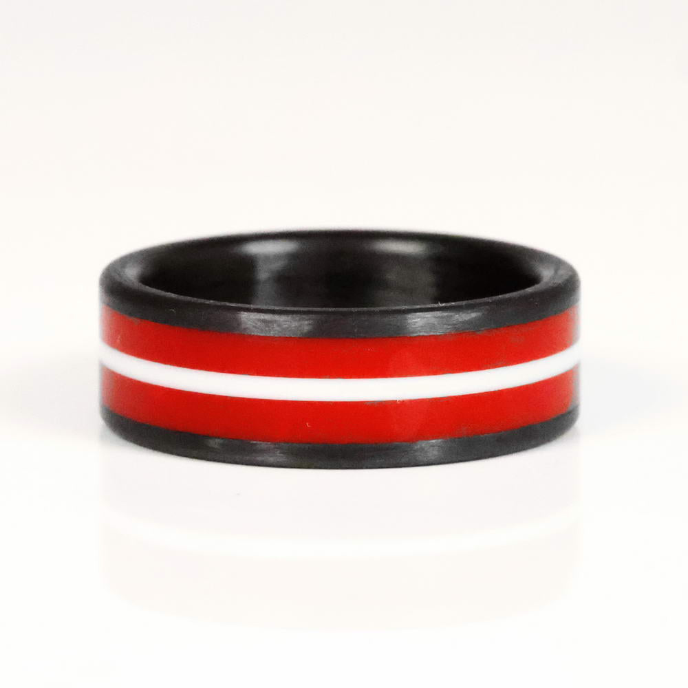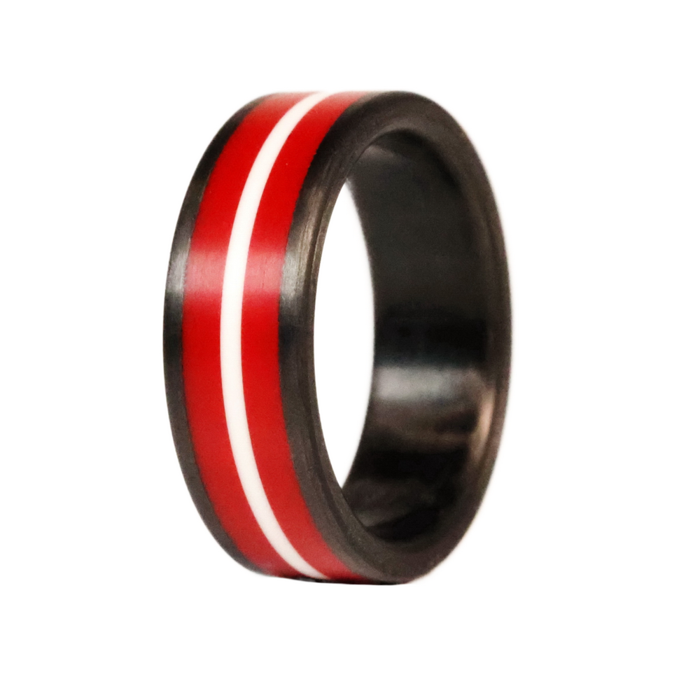 The Professor ring is made from lightweight durable carbon fiber and high strength cast epoxy resin. Handmade in Salt Lake City, Utah.