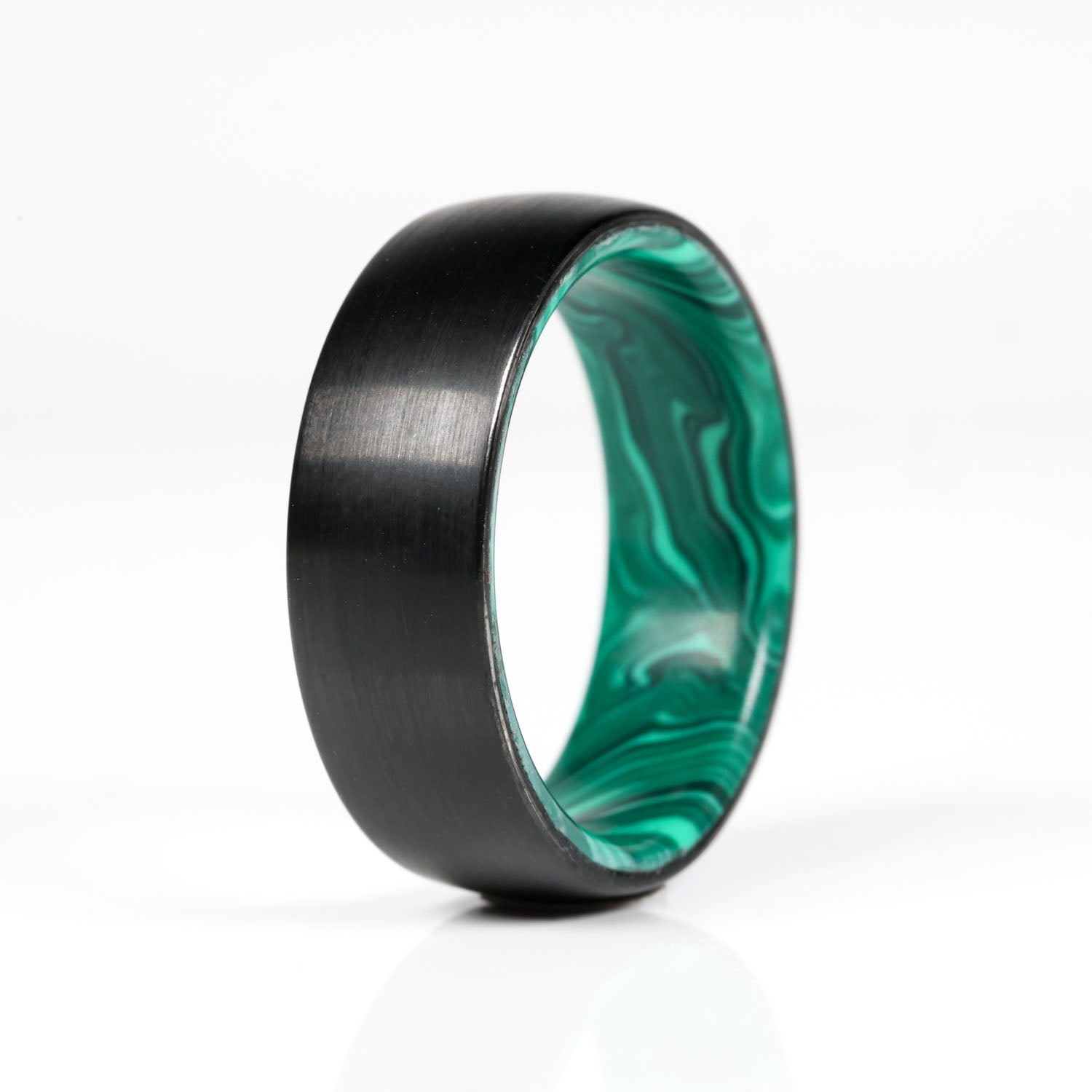 The Wizard ring combines the incredible durability of brushed black tungsten with a faux malachite green liner that would make even Oz green with envy. Perfect for those who believe in magic, adventure, and the occasional flying monkey encounter, this ring is your own personal journey down the yellow brick road.