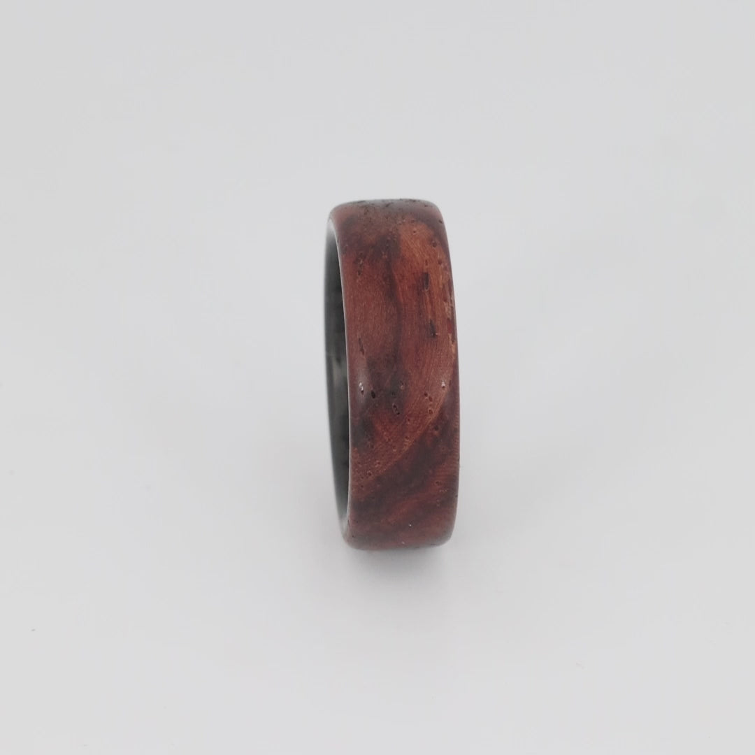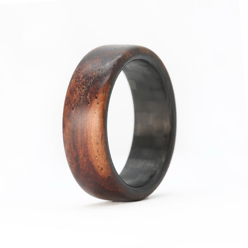 El Jefe commands respect and delivers the same. This cocobolo ring is constructed using Central American cocobolo wood formed onto a sturdy carbon fiber base. It shades from light to dark giving each ring a unique pattern.