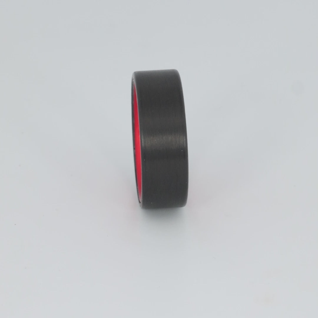 Introducing "The Red TT" - A red aluminum ring for men that pays homage to the historic Isle of Man and its famous TT races. Made from carbon fiber and colored aluminum, this ring features a striking red hue that captures the essence of the island's fiery spirit.