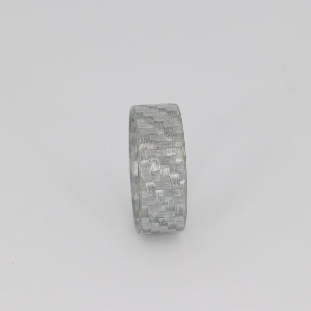 A non conductive wedding ring made completely out of glass fiber instead of carbon, the Quicksilver has all of the strength and lightness of its carbon brothers with an aesthetic all its own. Woven in a twill traditional 2x2 pattern, this classic style looks as good in silver as it does in black. And since the Quicksilver is made entirely from fiber glass, it's carbon-free and makes a perfect non-conductive wedding band for electricians and engineers.