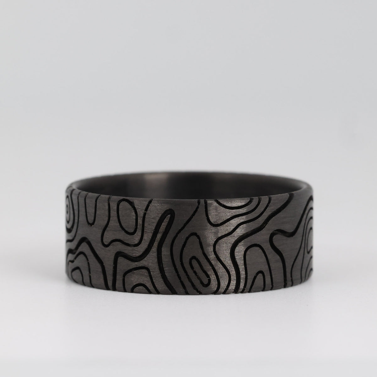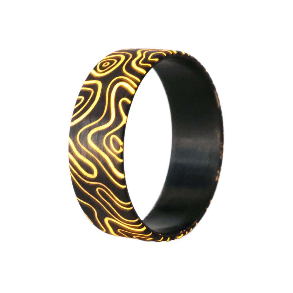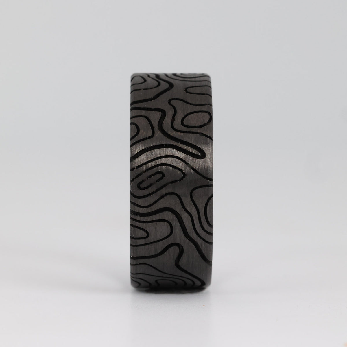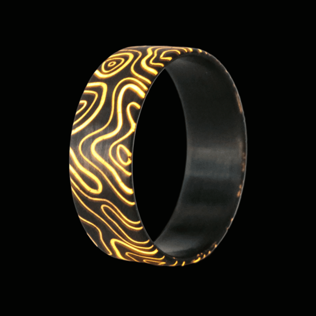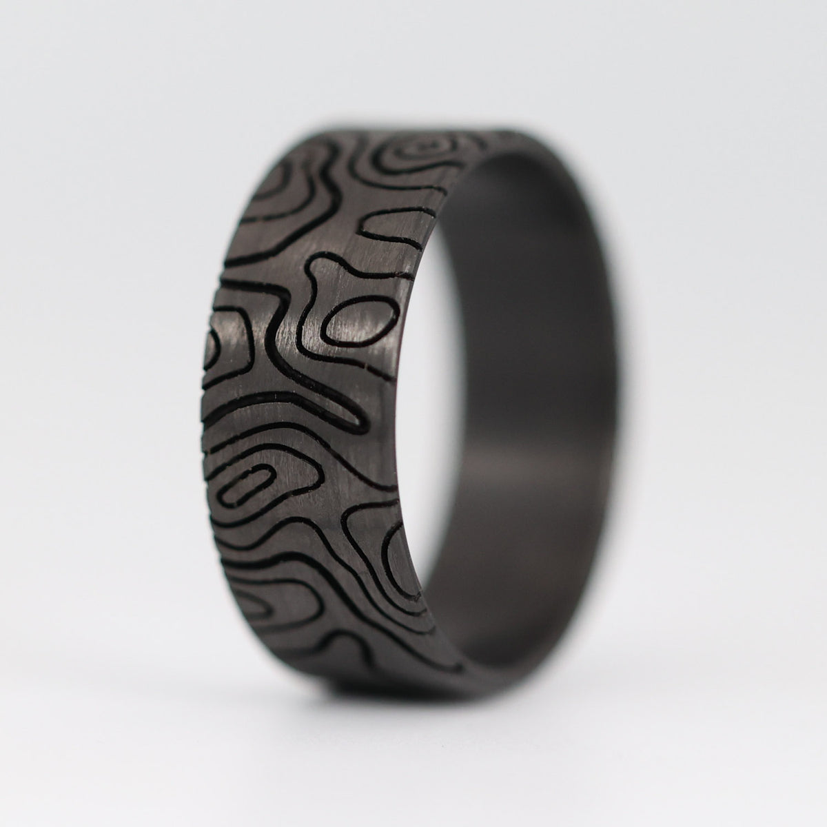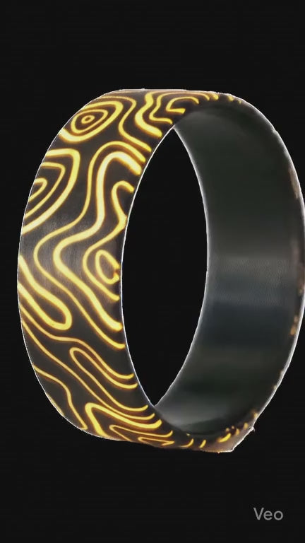GO CUSTOM - Glowing colors can be added to the contour lines on this ring to make for a ring that not only looks great in the daylight but pops at night too. We have an assortment of glowing colors available. LumiGLOW is a white powder that glows in bright ROYGBV colors when charged up or under black light. ChromaGLOW (ROYGBV) is same colored day and night.