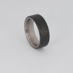 This men's titanium wedding band with pure carbon fiber is handcrafted in Salt Lake City, UT.