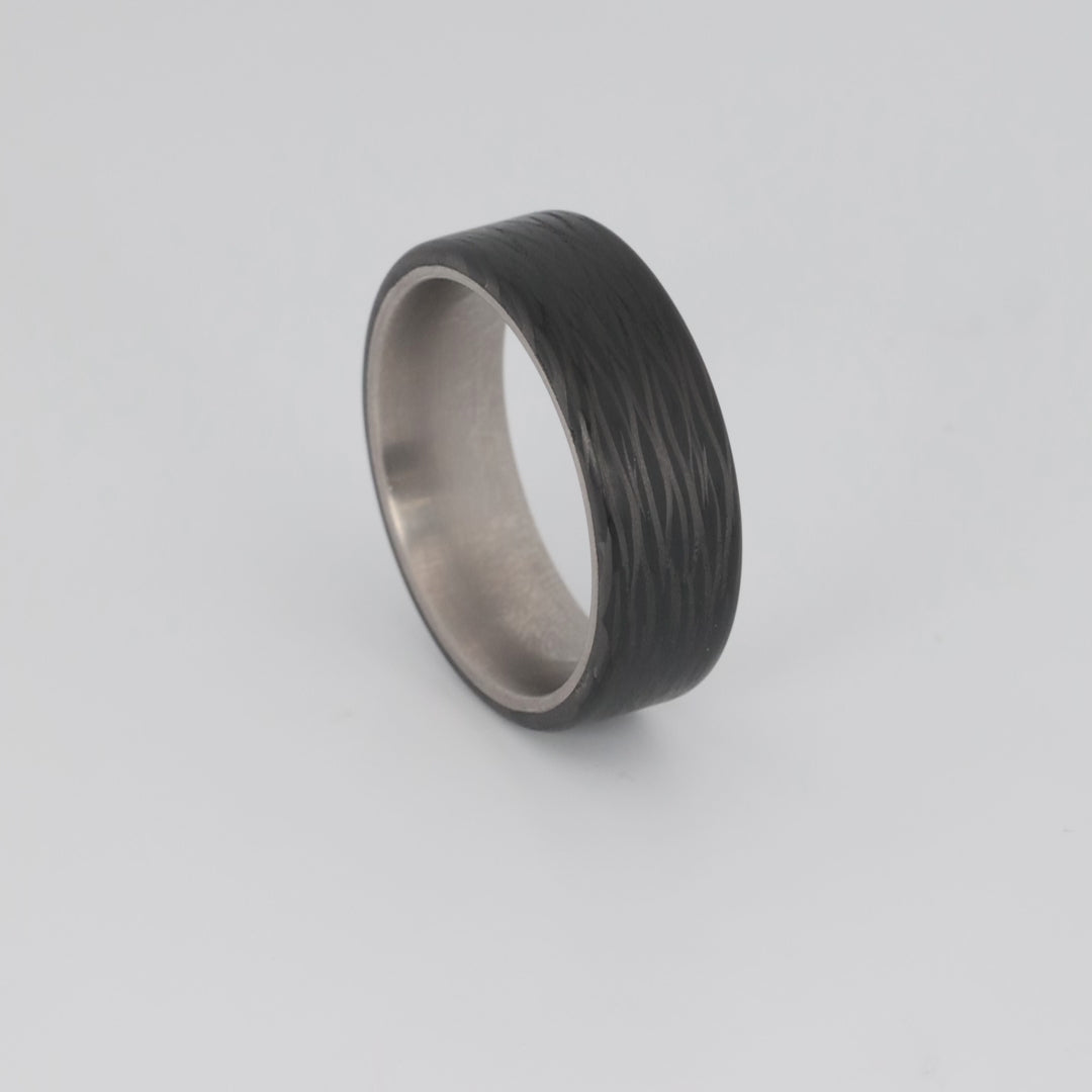 I never wore jewelry or rings before getting married. I chose this ring because it was good symbolism. We want our marriage to be strong, inflexible, but not a burden. Titanium and carbon fibre are as perfect materials as we can get.