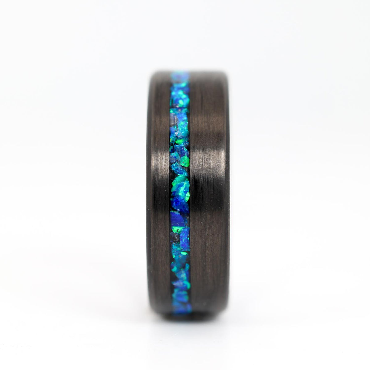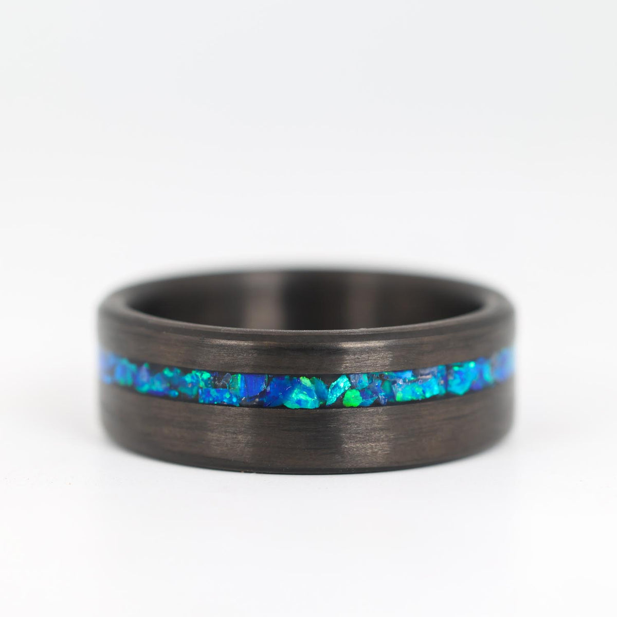 Channel your inner beach bum while still looking sharp at the office. Crafted from ultra-durable carbon fiber - so tough it could survive a zombie apocalypse all with a dazzling blue opal stripe that’s as mesmerizing as the ocean on a sunny day, this ring is the ultimate accessory for those who believe in work-life balance, leaning to more life than work.
