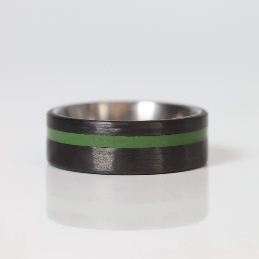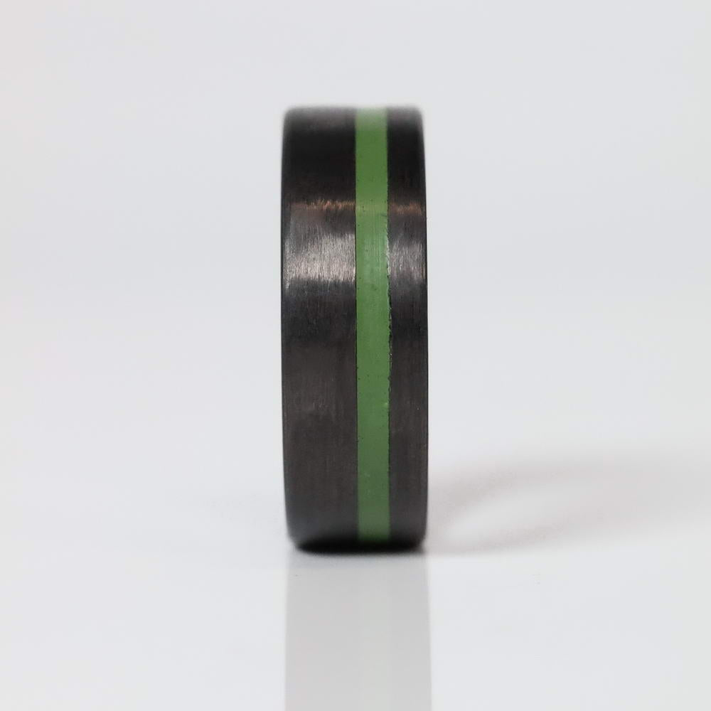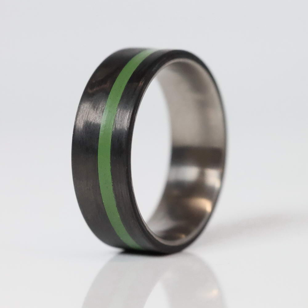 Carbon Fiber Men's Wedding Band, Army Green Stripe & Titanium Interior