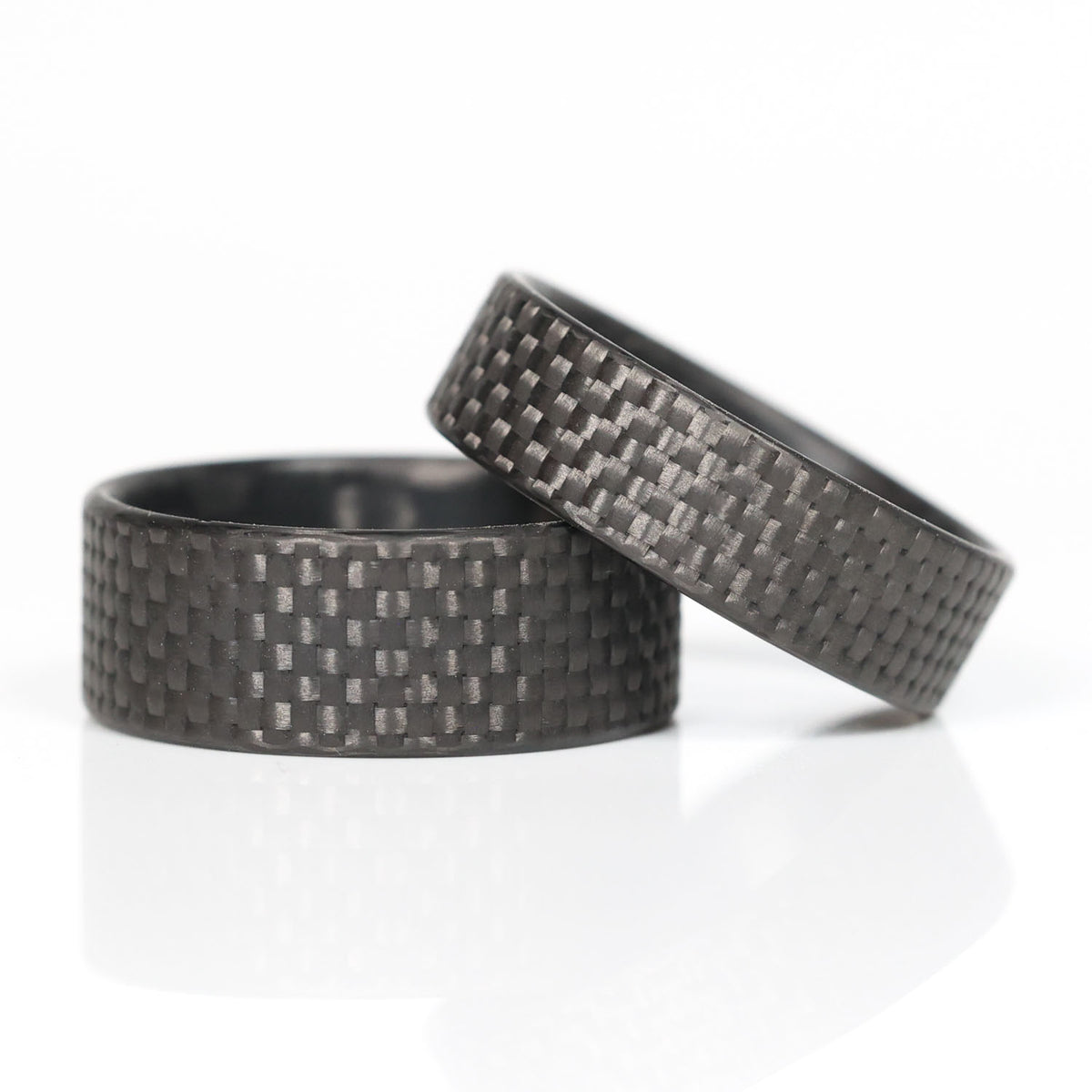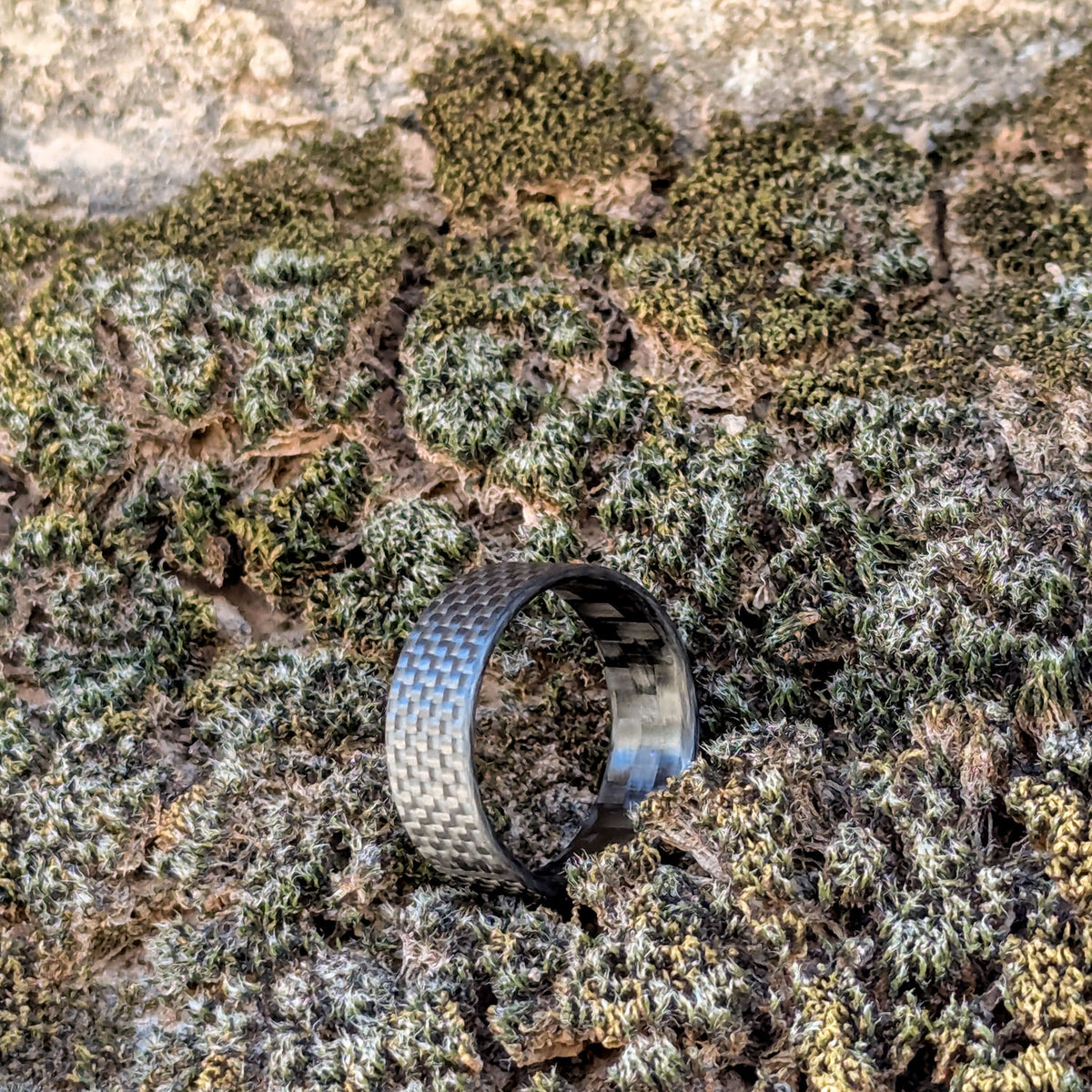 Built from a combination of 3k and 1k carbon fiber fabrics, the Pilot ring guides you in with precision and skill. Each outer woven strand of carbon fiber is made up of 1,000 individual filaments of carbon vs the usual 3k (3,000 filaments) and sometimes 12k (12,000). Don't confuse the size of the # with quality or strength, 1k is traditionally the most difficult to come by and always the most valuable. In addition to this ring being uniquely made from this finely woven carbon fiber, it is processed in a way that yields a soft touch, textured finish. A first of its kind in the ring world.