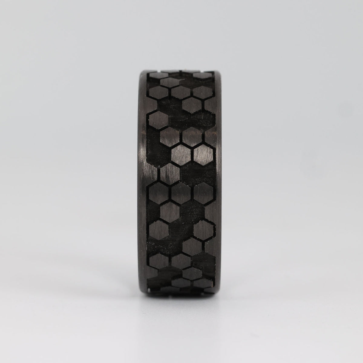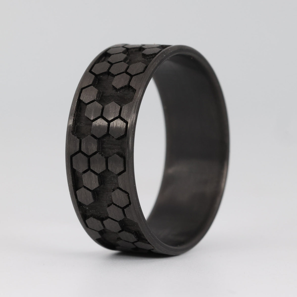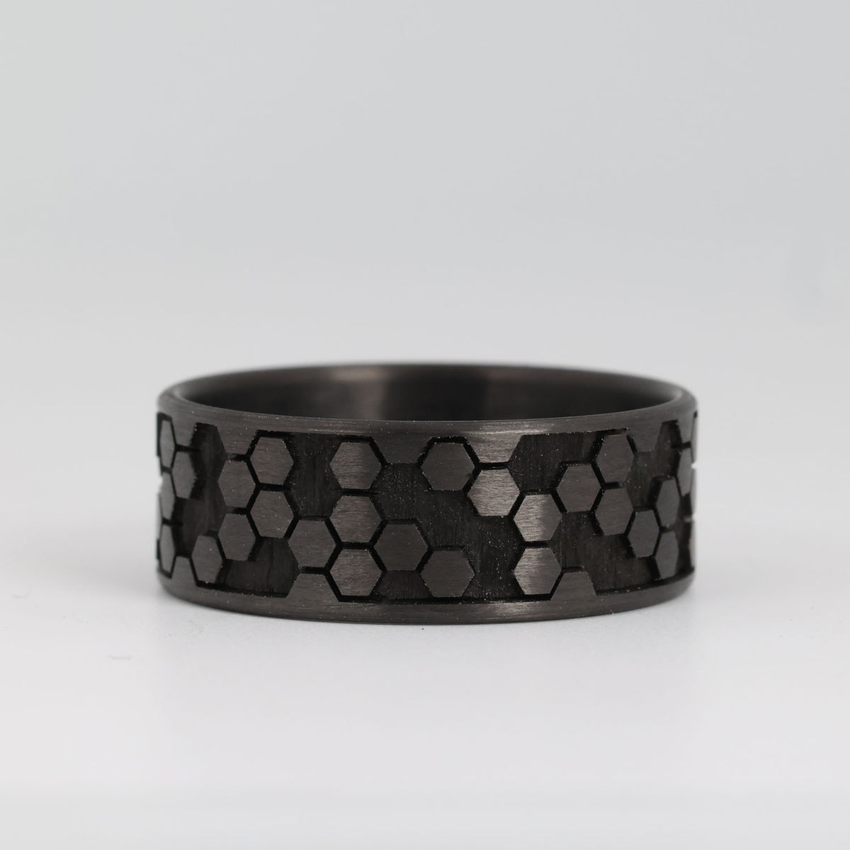 Buzz right into style with The Stinger. The carbon fiber ring that’s tough with a sweet side! Featuring a slick honeycomb pattern. Look sharp without the sting.