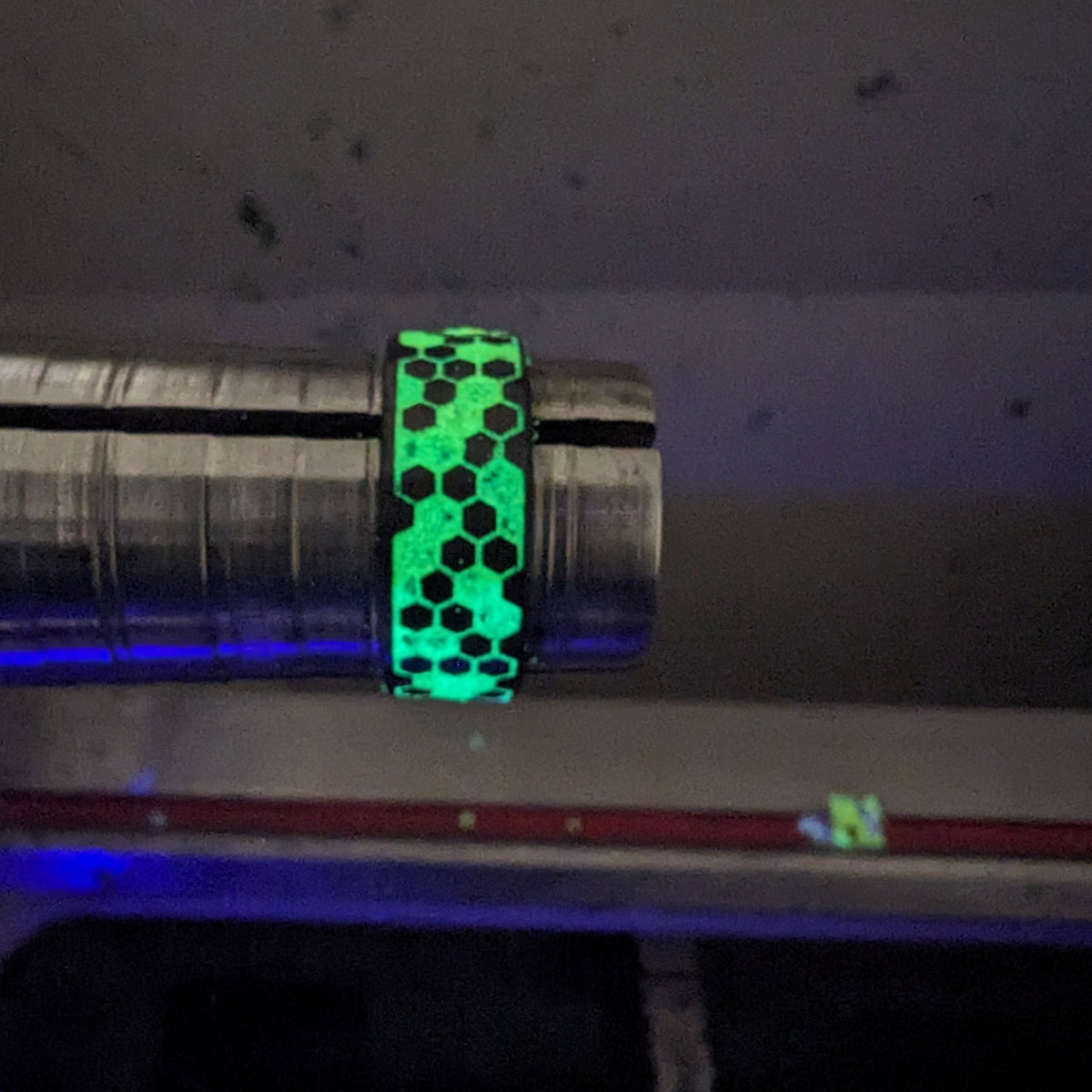 GO CUSTOM - Glowing colors can be added to the valleys & lines on this ring to make for a ring that not only looks great in the daylight but pops at night too. We have an assortment of glowing colors available. Additional charges apply for this addition.