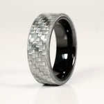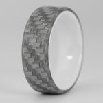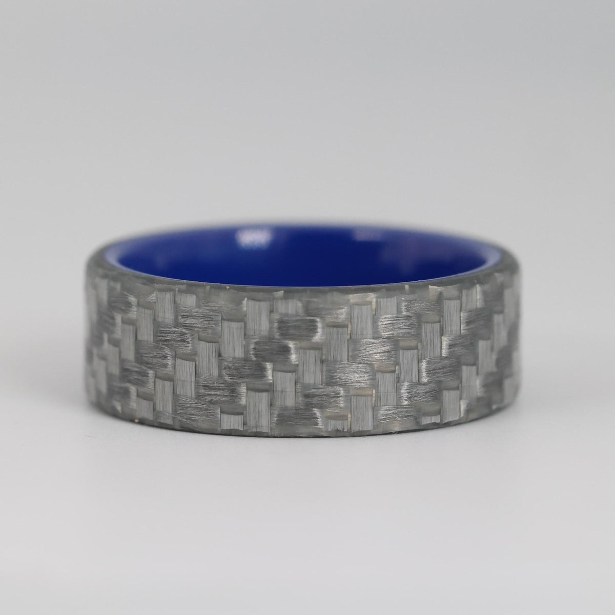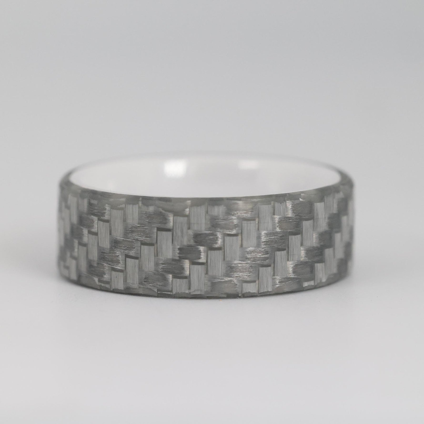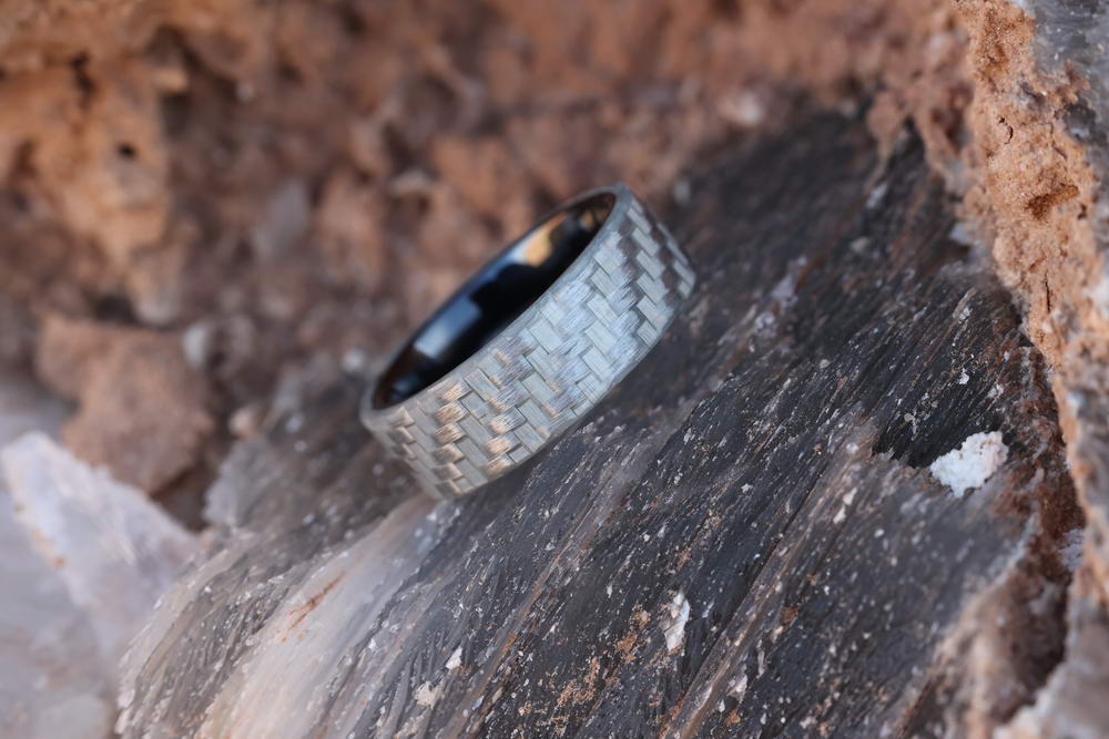 Electrically non-conductive, the Electrician Ring is aptly named however not to be pegged purely for electricians. This rings outer sleeve is a 2x2 woven twill glass fiber that has been tested to 800 cranking amps. This non-conductive rings liner is made of a glossy ceramic which by nature is also non-conductive. While we generally do not recommend ceramic rings for the lack of strength, eg brittleness however when sleeved with Silver Glass aka "Silver Carbon Fiber" it reinforces and provides an incredibly durable ring, much stronger than a pure ceramic ring.