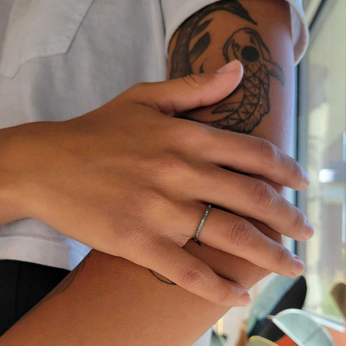 The stackable, marathon friendly version of it’s brother, The Quicksilver, this non-conductive gray stackable ring made from glass fiber is lightweight and as fashionable as it is electrician friendly. While this ring’s profile screams minimalism, rest assured that our fabrication process ensures a durable ring made to last.