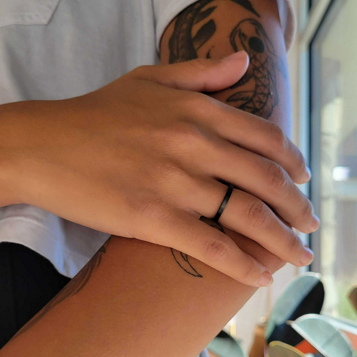 The Sleek Carbon Fiber Stackable Ring achieves a level of minimalism that is unparalleled. Its sleek design and near weightlessness make it the ideal ring to pair with your engagement ring or wear it simply on its own. While this ring’s profile screams minimalism, rest assured that our fabrication process ensures a durable ring made to last.