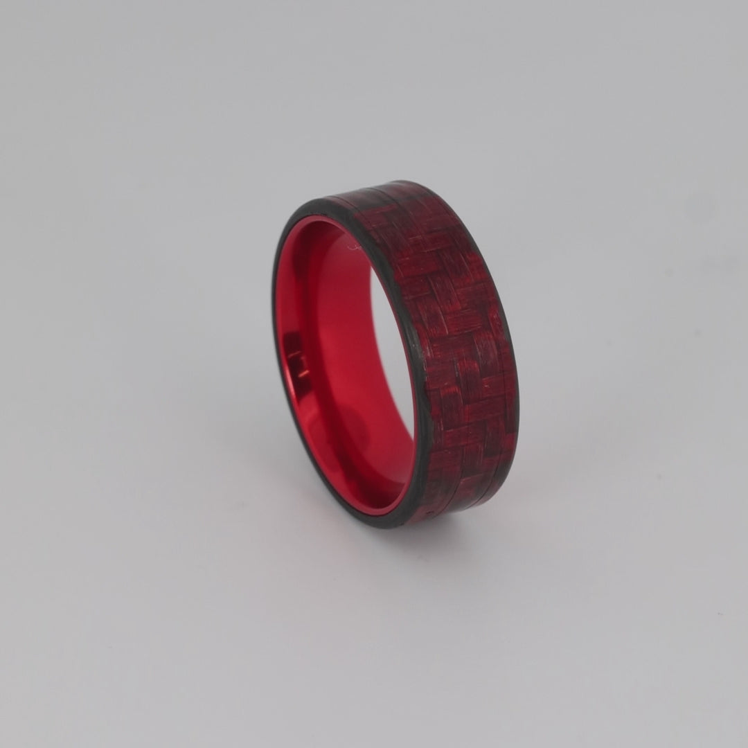 Red Carbon Fiber Men's Ring With Red Aluminum Interior