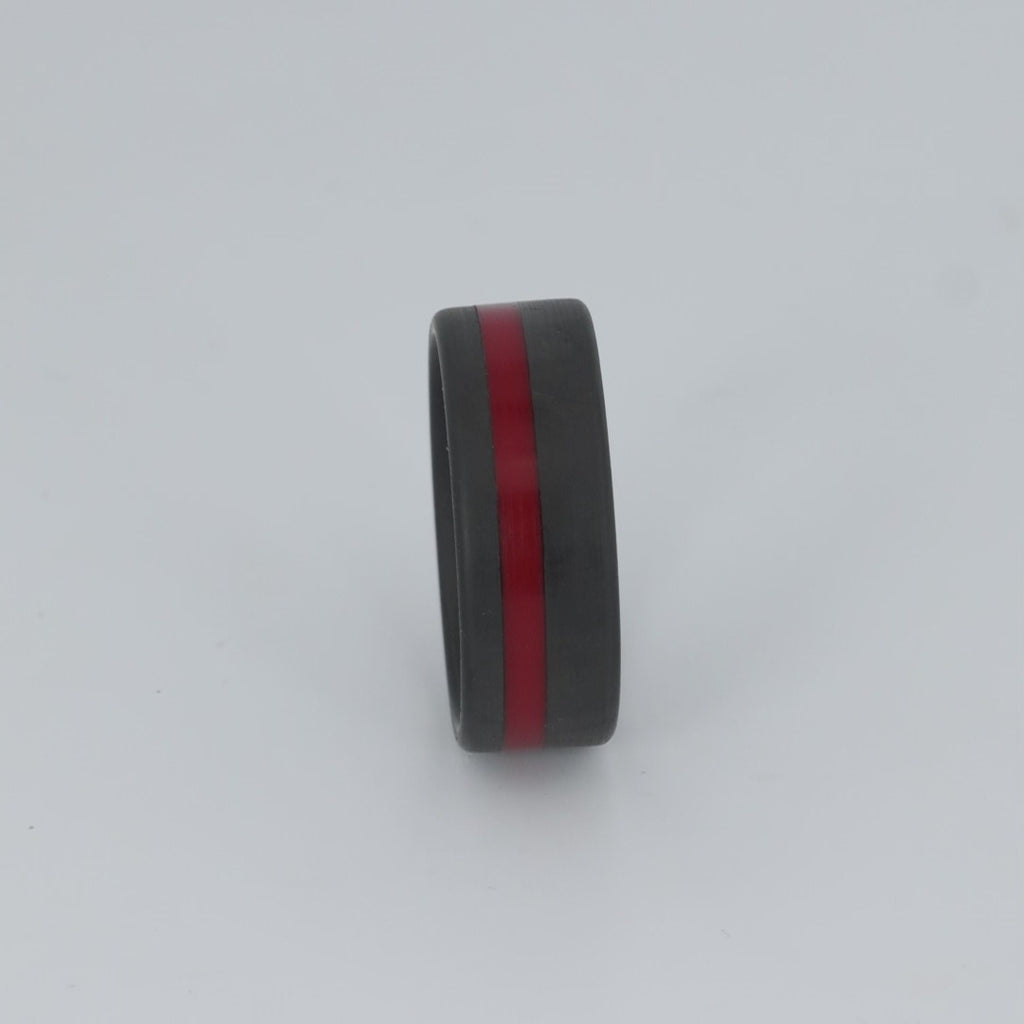 This thin red line ring is built for those who run into the burning building. The ones who save the kittens from the trees and then pose shirtless for a calendar. The men who make their living on the pole. Made from our filament carbon fiber with a red epoxy inlay, this ring will be your partner for life.