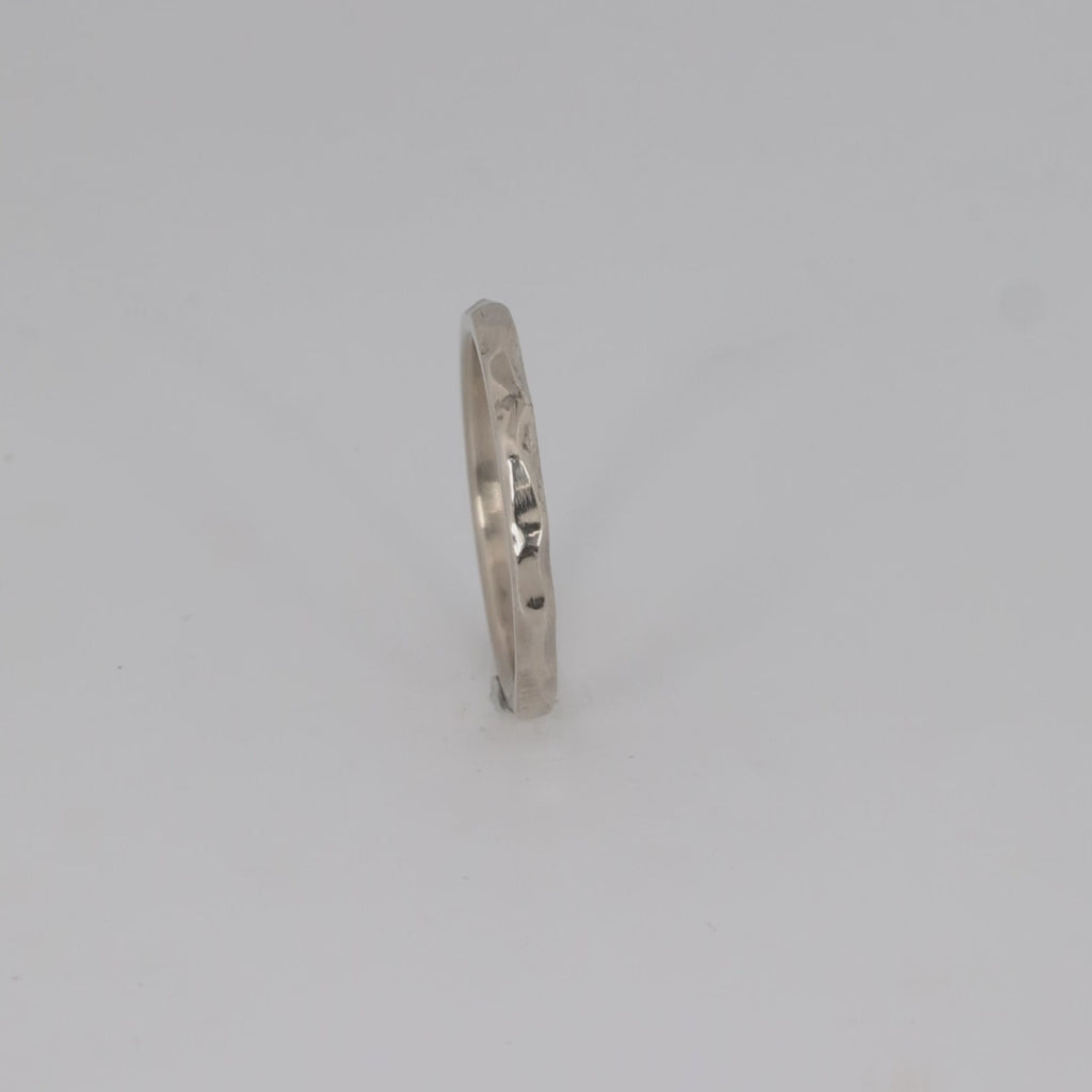 Our stackable rings are handmade in Salt Lake City from 14 karat white gold. They are 2 millimeters in width but can be customized if so desired.