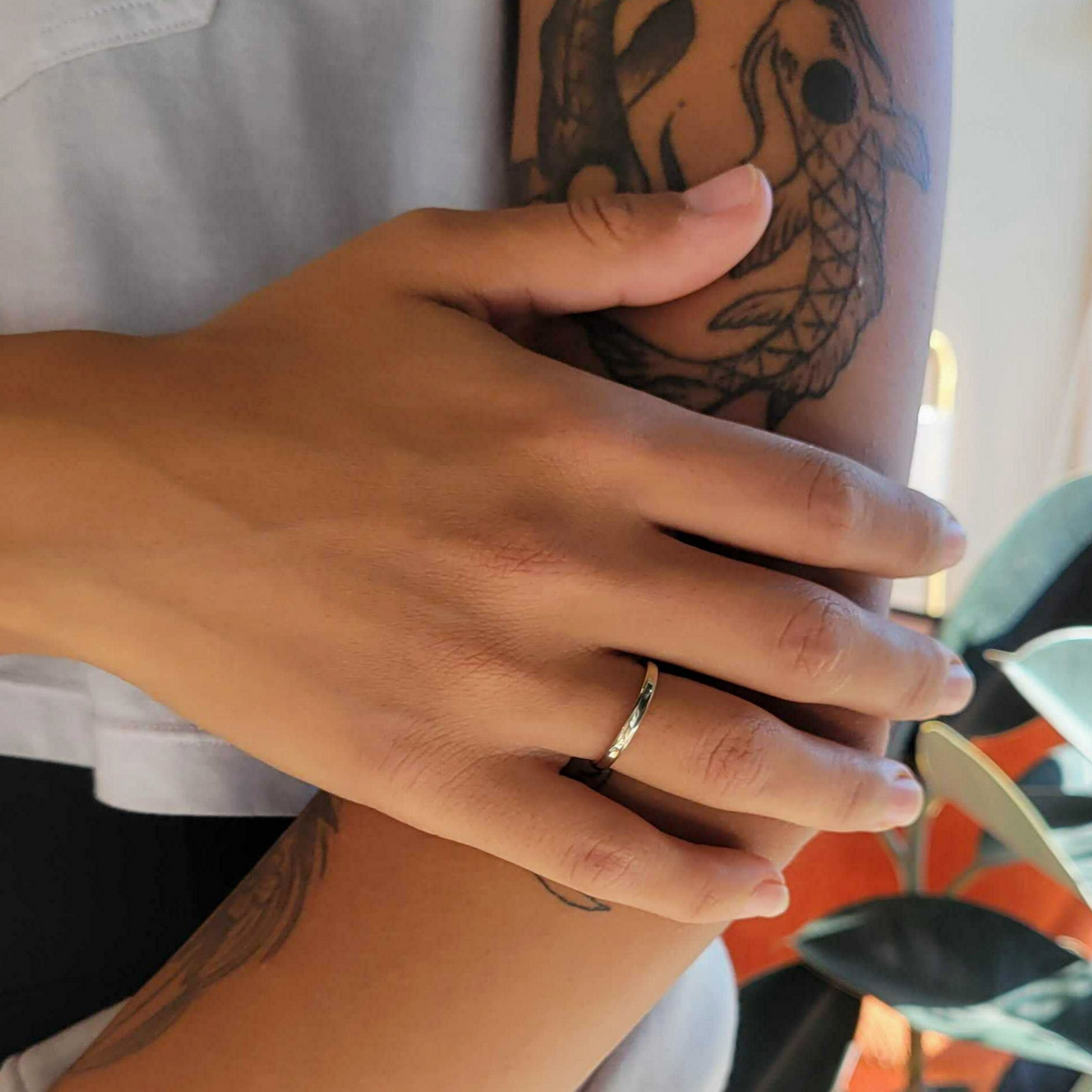 Our stackable rings are handmade in Salt Lake City from 14 karat gold. They are 2 millimeters in width and can be customized if so desired.