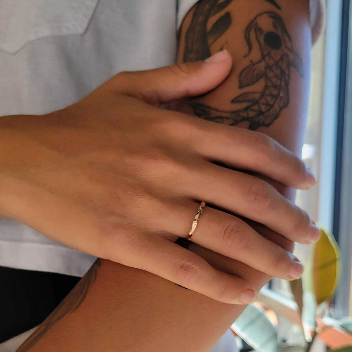 Our stackable rings are handmade in Salt Lake City from 14 karat gold. They are 2 millimeters in width and can be customized if so desired.