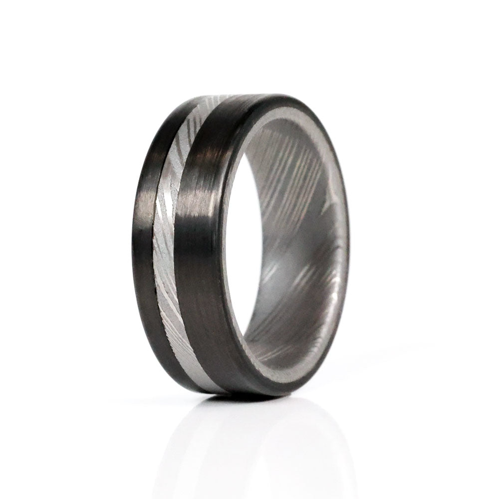 Damascus Steel Men's Ring with Carbon Fiber