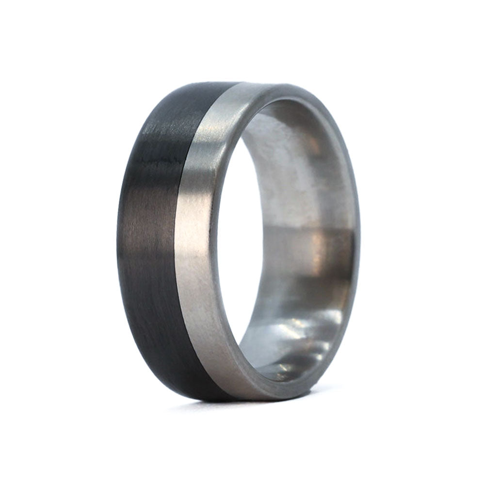 This men's titanium band with carbon fiber is built using the same materials used in real rockets today. The Rocketeer is bound to launch compliments. Available in brushed or polished titanium.
