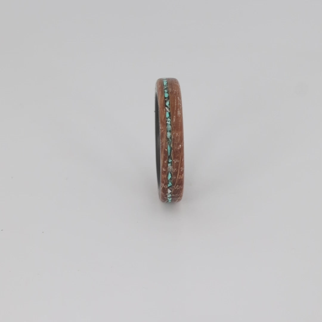 4mm Women's Turquoise Wedding Band with Whiskey Barrel Wood