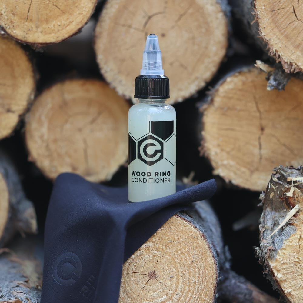 We've taken most of the concern out of caring for your new wood ring with our simple to use, natural conditioning mineral oil and natural wax care kit! Our wood rings are all made with solid real wood and as such are subject to degradation as a result of wear and tear. This care kit will help keep your new (and old) ring looking fresh while also prolonging its wearable life!